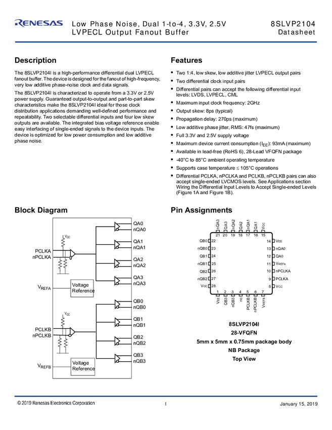 8SLVP2104I Dual 1:4, 3.3V, 2.5V LVPECL Output Fanout Buffer