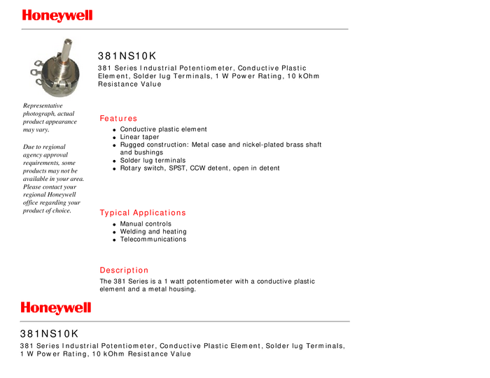 PM381NS10K1-CLAROSTAT Potencjometr z przewodzącego plastyku; Bushing 1/4"32 ; 1W 1 obrotowy, kąt...