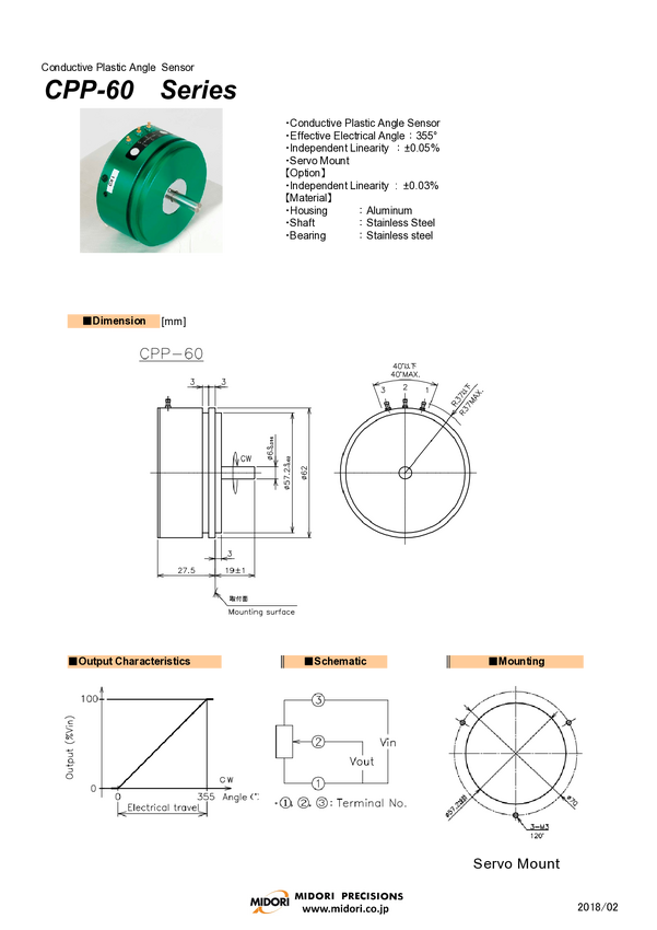 PM CPP-60-5K MIDORI Potencjometr przewodzący plastyk; Servo ?? 62mm;kąt el.340 s t; mech 360 st...