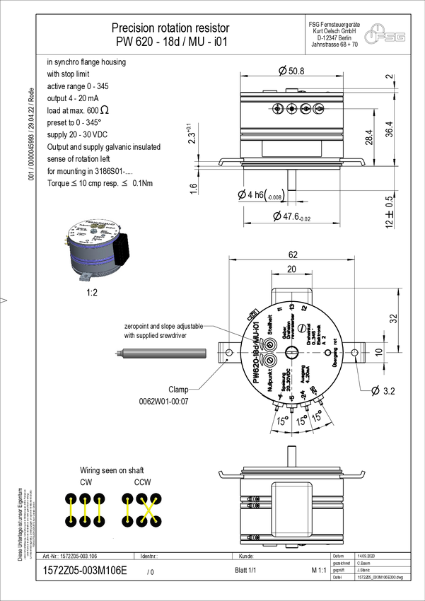 1572Z05-003.106 Potentiometer 345° movement x 4-20mA - PW620/MU-i01 1572Z05-003.106 (PW620/...
