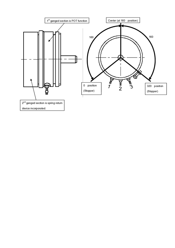 potencjometr przew.plastyk; servo size 20; lin 0,5% IP54;3W 1 obr.;ośka 1/4"=6,35mm; średnica 50,8mm=2";gł.bębna 25mm+2m m+g.mechanizmu spręż.powrotnej ok.25mm=52mm; dodatkowo sprę żyna powrotna wracająca na śr.+-160st ( 320 stopni).Stop mec