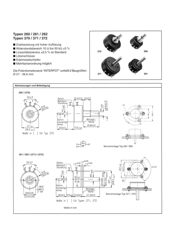 PM372R..K/R..K-MEGATRON Potencjometr drutowy; Bushing; lin 0,5%; tol. 5% 1 obrotowy; średnica 36,5m...