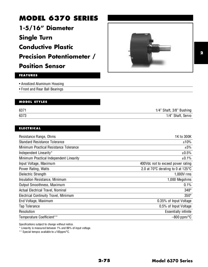 PM6373-BI Potencjometr przewodzący plastyk, Serwo 1 obrotowy; średnica 1-5/16"; średn...