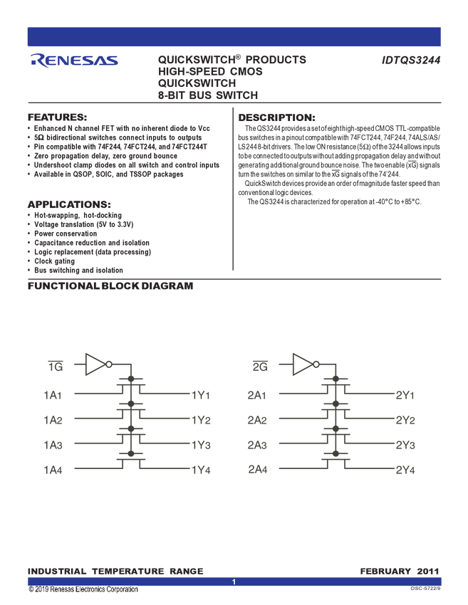 QS3244 High-Speed CMOS QuickSwitch 8-Bit Bus Switch