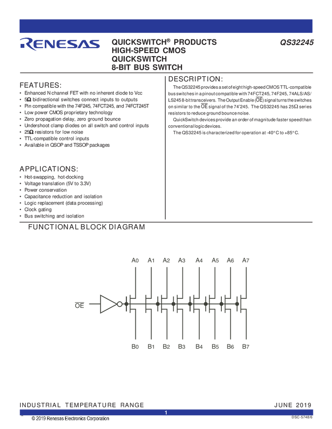 QS32245 High-Speed CMOS QuickSwitch 8-Bit Bus Switch