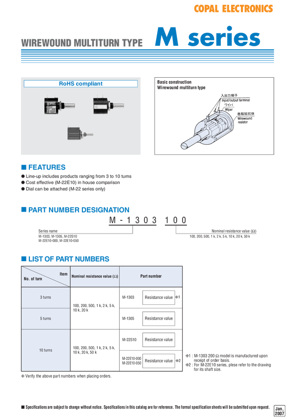 PMM1303-20K-COPAL, PMM1303-500-COPAL, PMM1303-5K COPAL, PMM1305-5K-COPAL