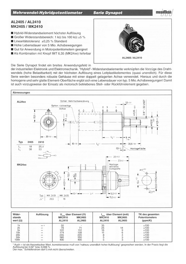 Potencjometr hybrid; Bushing; lin 0,25; tol.5% 10 obrotowy; średnica 20mm; ośka 1/4"=6,35mm trwałość 5.000.000 obr; moc 2W