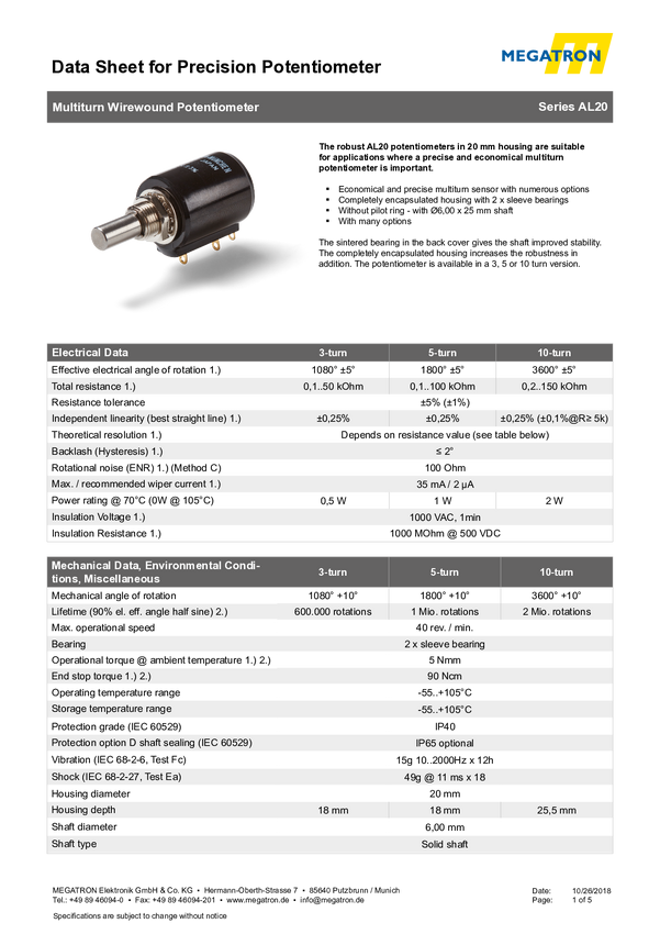 Nasze oznaczenie 20hp-10s-5K lub zamiennik lepszy 20hhp-10s-ct-5K średnica korpusu 20mm dł. 25,4mm; Bushing M9x0.75 dł.9,5 mm ośka średniac 6 mm długość 25 mm (15 mm ponad gwint ) potencjometr 10-cio obrotowy drutowy precyzyjny moc 2W; IP40; wyprowadzenia z boku