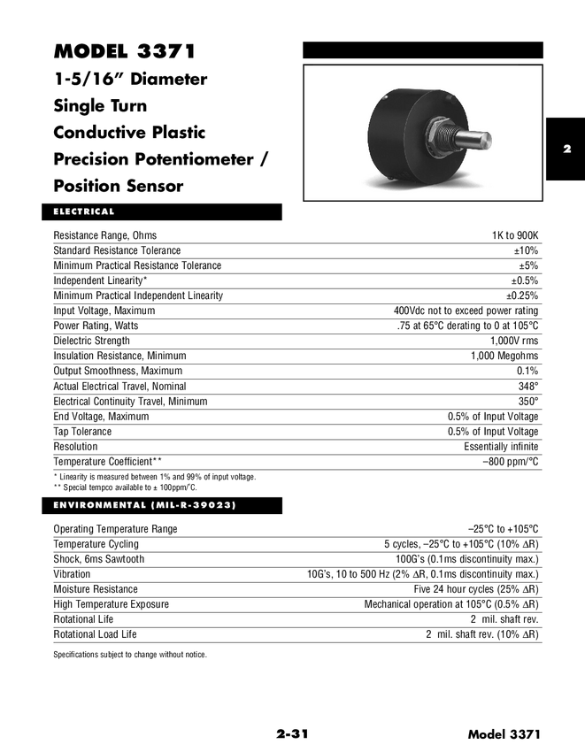 PM3371-BI =PP6657 bourns;beckman Conductive plastic, Bushing 1 obrotowy, średnica 1...