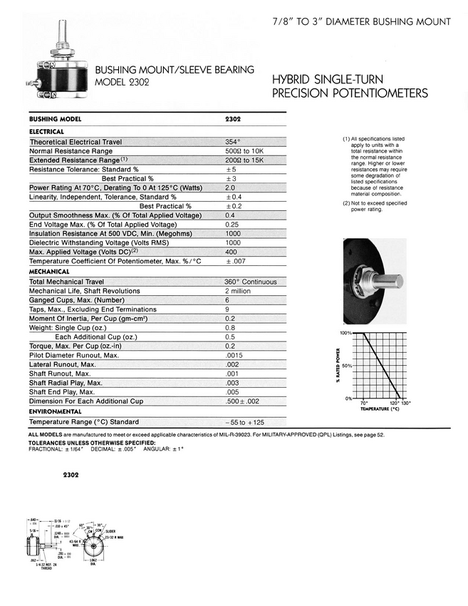 Potencjometr Hybrid; bushing 1 obrotowy; średnica 1 1/16"