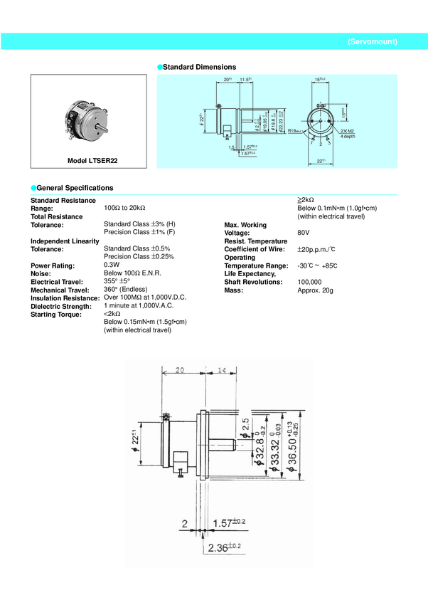 PMSLTSER22-10K Potencjometr wykonany na bazie modelu std. z modyfikacją części przedniej,...