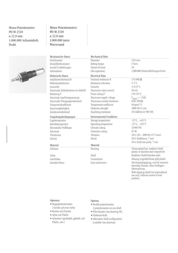 Potencjometr z silnikiem na bazie modelu pd2310 Potencjometr drutowy; Bushing; lin 0,15%; tol. 5%; IP50 10 obrotowy; średnica 22mm; ośka 1/4"=6,35mm trwałość 1.000.000 obr;
