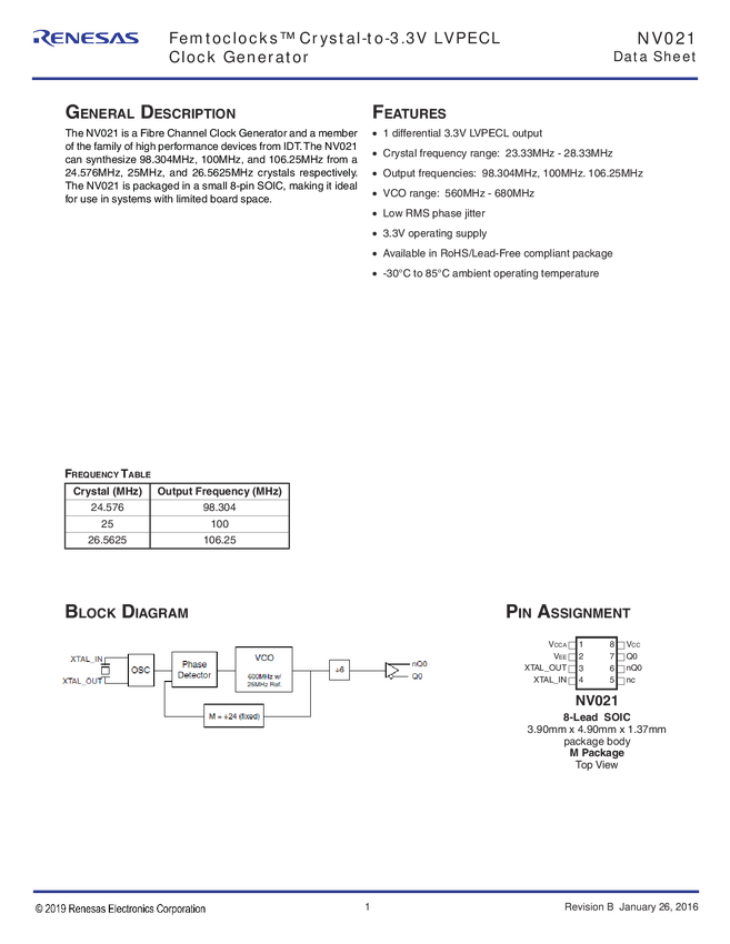 NV021 Femtoclocks™ LVPECL Clock Generator