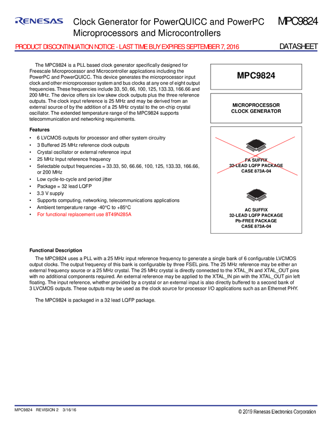 MPC9824 Clock Generator For PowerQUICC And PowerPC Microprocessors And Microcontrol...