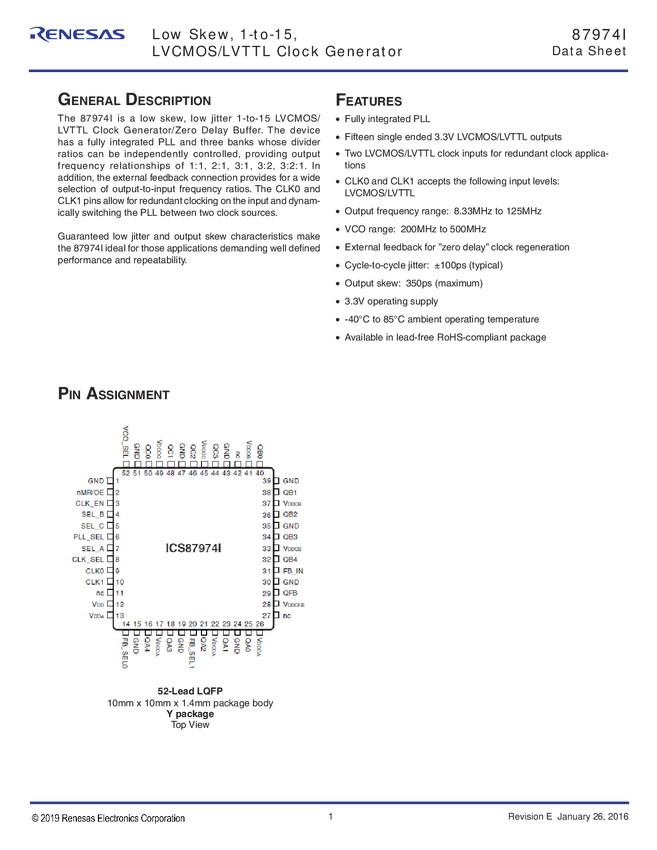 87974I Low Skew, 1-to-15 LVCMOS/LVTTL Clock Generator