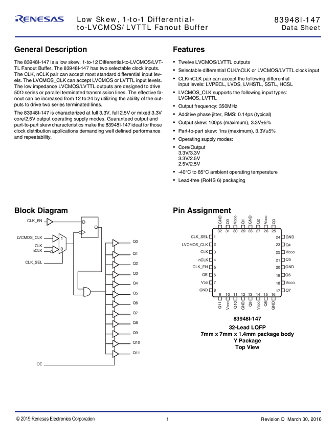 83948I-147 Low Skew,1-to-12 Differential-to-LVCMOS/LVTTL Fanout Buffer