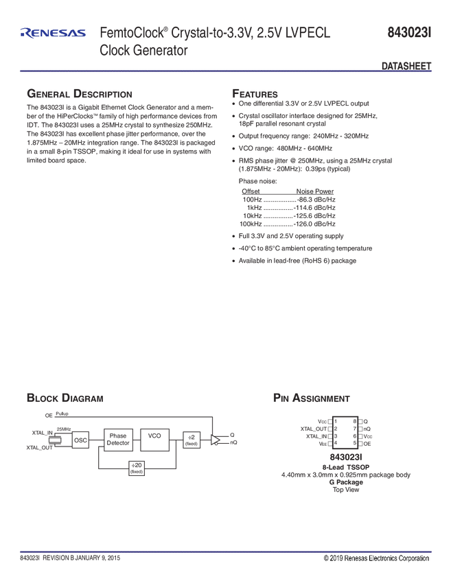 843023I FemtoClock Crystal-to-3.3V,2.5V LVPECL Clock Generator