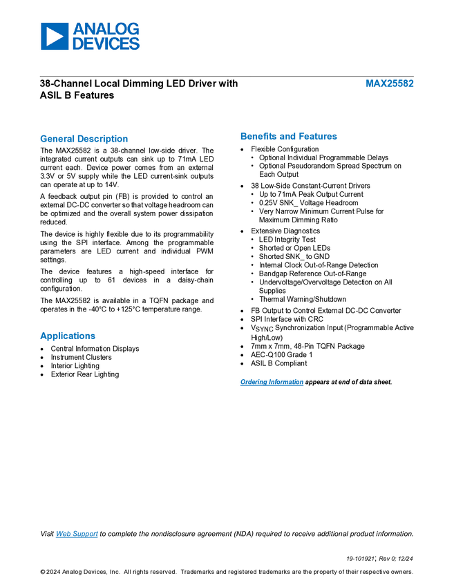 MAX25582 38-Channel Local Dimming LED Driver with ASIL B Features