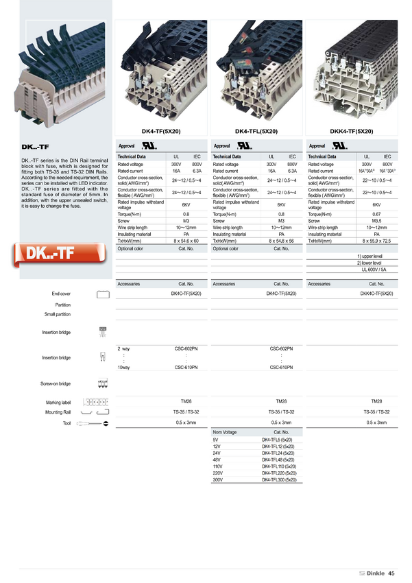 Gniazdo bezpiecznika; DK10-TF(5X20); fi 5x20mm; na szynę DIN; 6,3A; 600V AC; DINKLE; RoHS