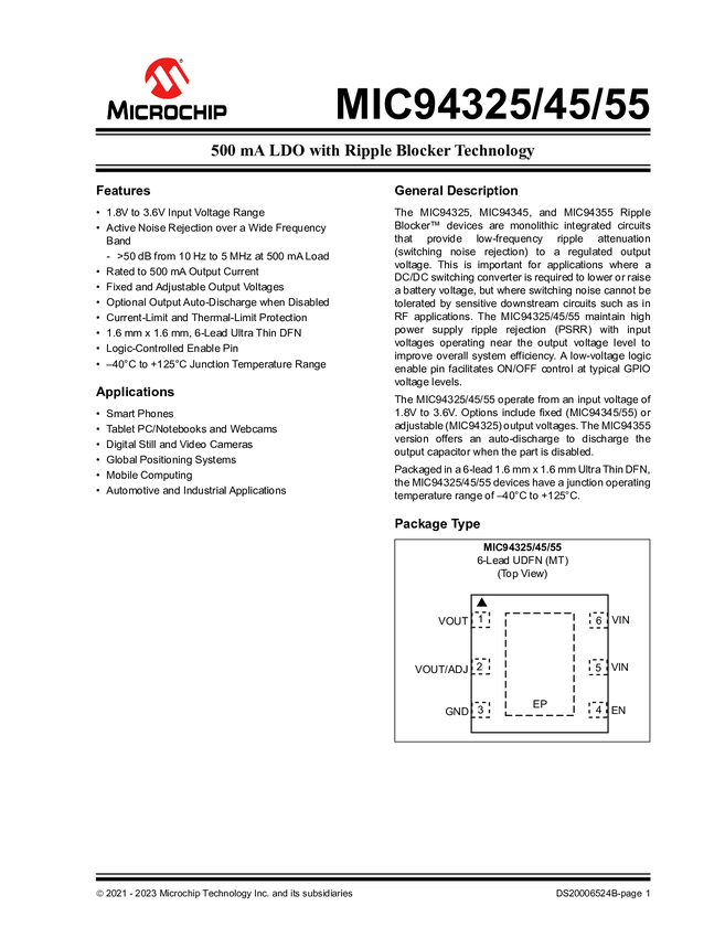 MIC94345 500 mA LDO with Ripple Blocker Technology