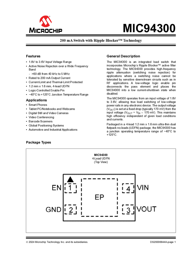 MIC94300 200 mA Switch with Ripple Blocker™ Technology
