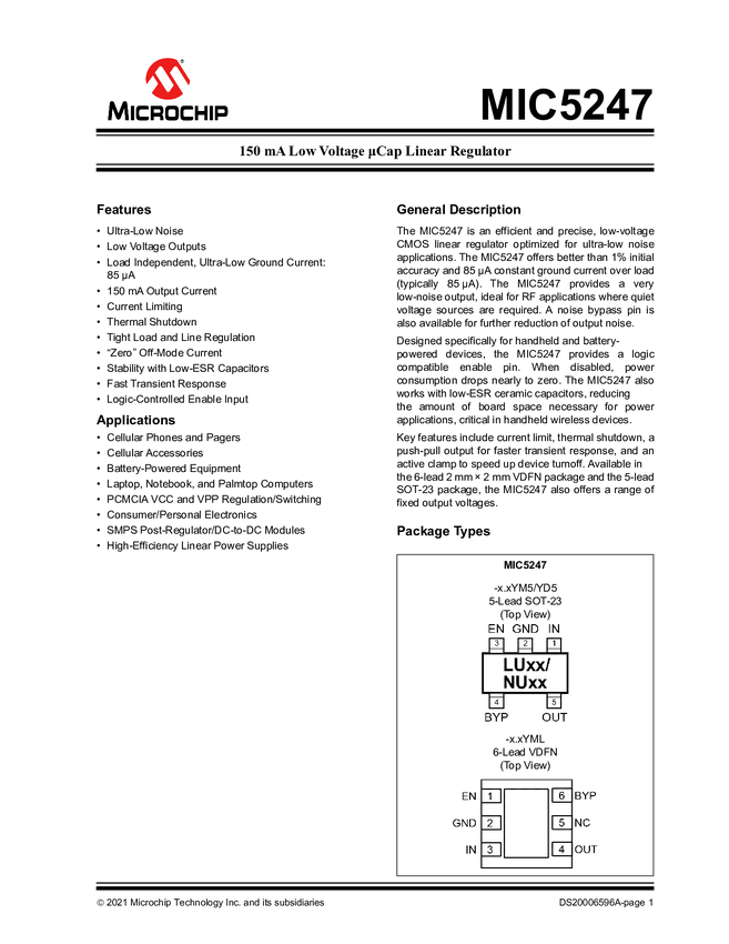 MIC5247 150 mA Low Voltage μCap Linear Regulator