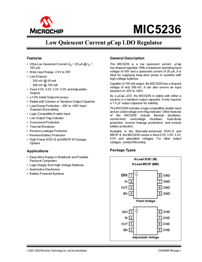 MIC5236 - Low Quiescent Current μCap LDO Regulator