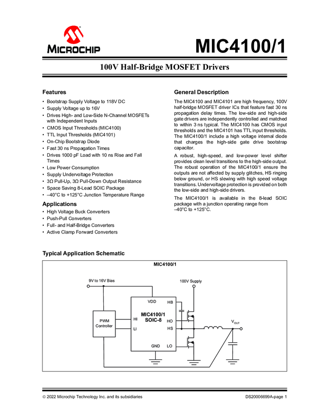 MIC4100/1 - 100V Half-Bridge MOSFET Drivers
