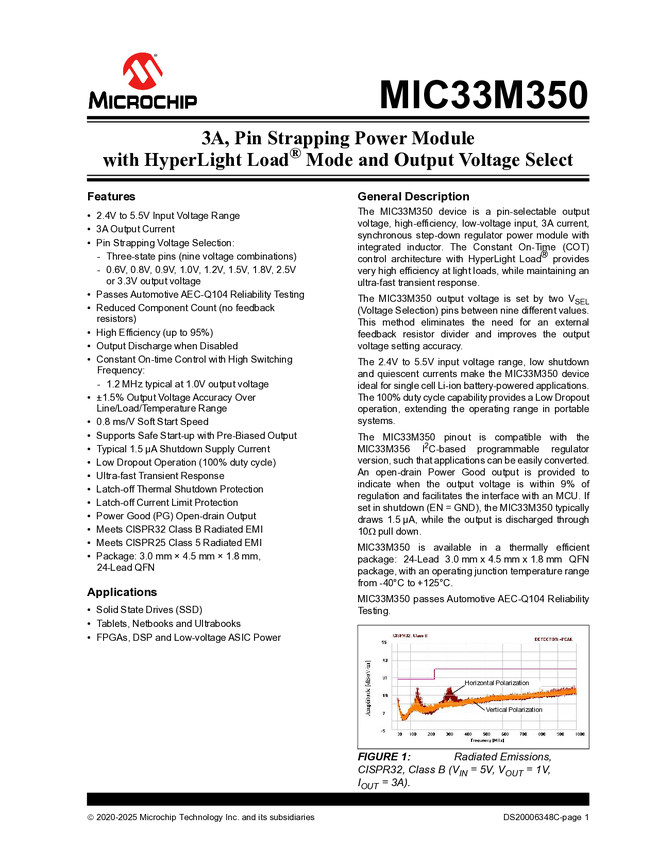 MIC33M350 3A, 2 MHz DC to DC Power Module with HyperLight Load® Mode and Output Volta...