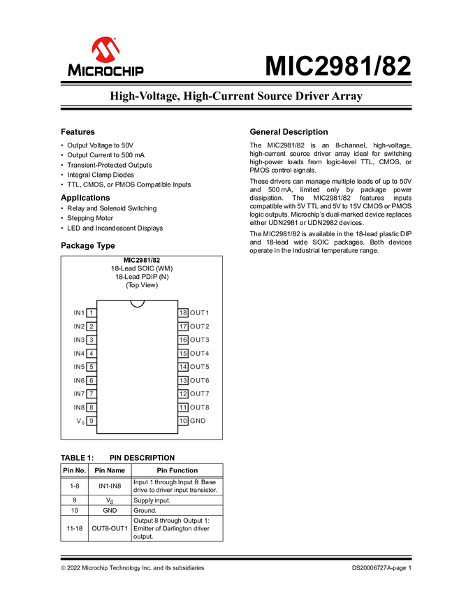 MIC2981-82 - High-Voltage, High-Current Source Driver Array