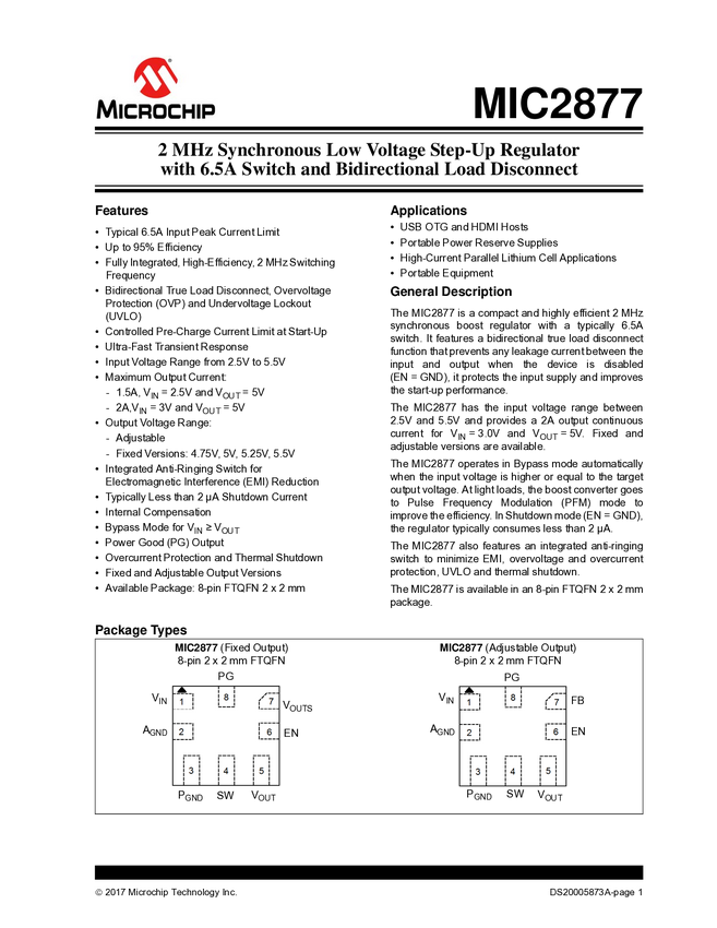 MIC2877 6A ISW, Synchronous Boost Regulator with Bi-Directional Load Disconnect