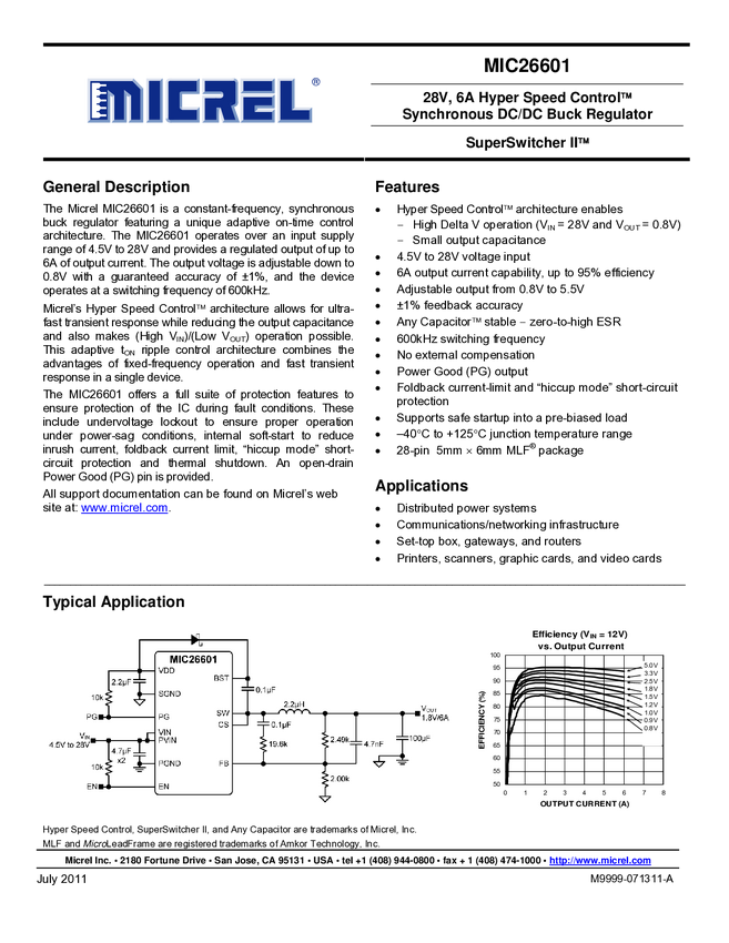 MIC26601 28V, 6A Hyper Speed Control Synchronous DC/DC Buck Regulator