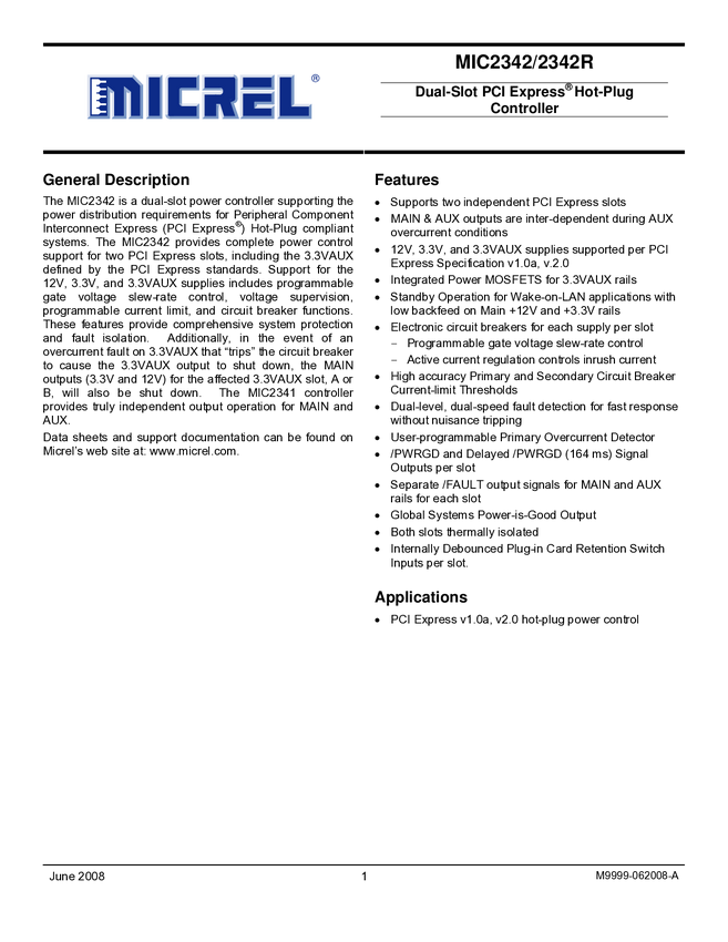 MIC2342 MIC2342/2342R - Dual-Slot PCI Express® Hot-Plug Controller