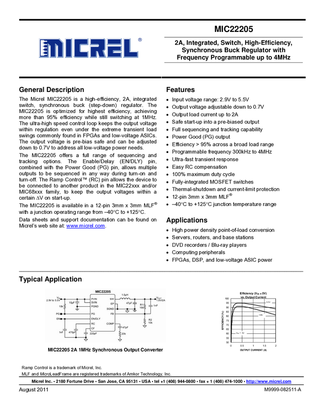 MIC22205 2A Integrated Switch High-Efficiency Synchronous Buck Reg