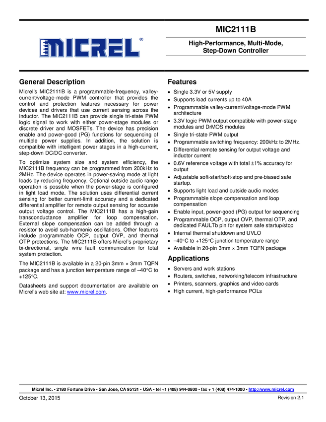 MIC2111B - High-Performance, Multi-Mode, Step-Down Controller
