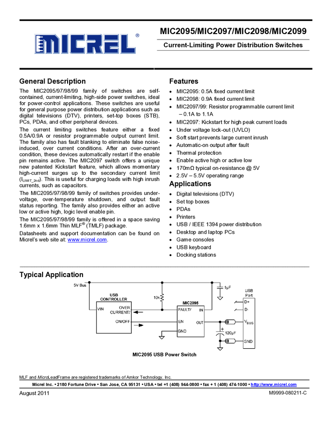 MIC2099 MIC2095/7/8/9 - Current-Limiting Power Distribution Switches