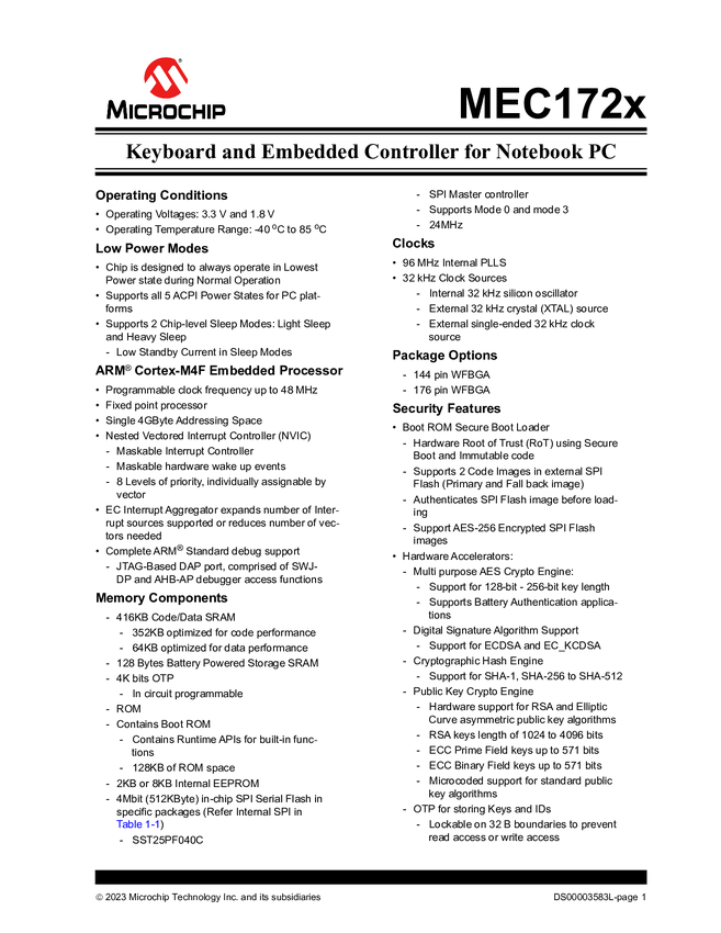 MEC172x Keyboard and Embedded Controller for Notebook PC - Data Sheet