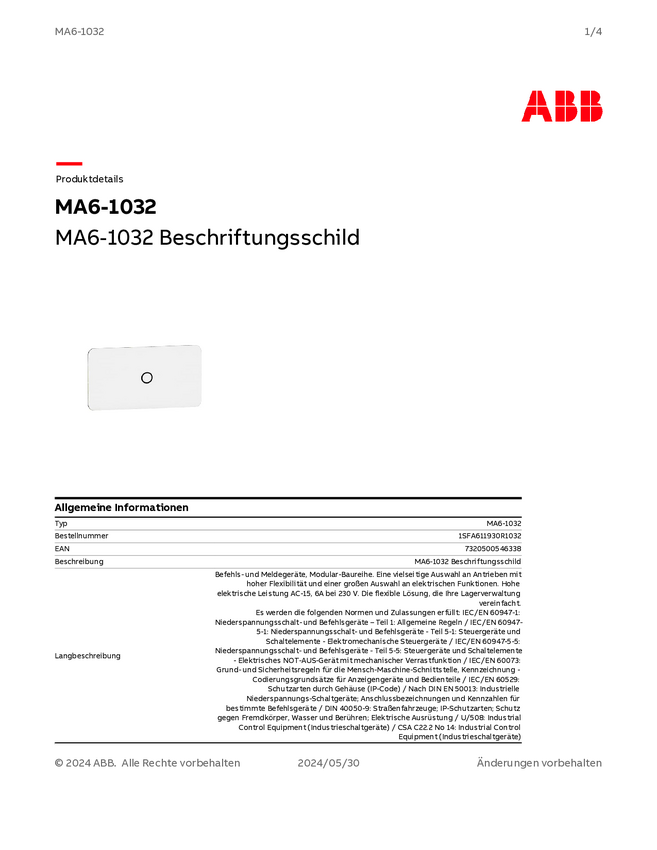 Płytka do etykietowania ABB MA6-1032 1 szt.