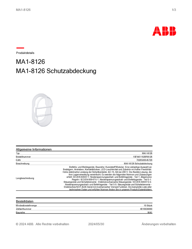 Nasadka chroniąca przed kurzem ABB MA1-8126 1 szt.