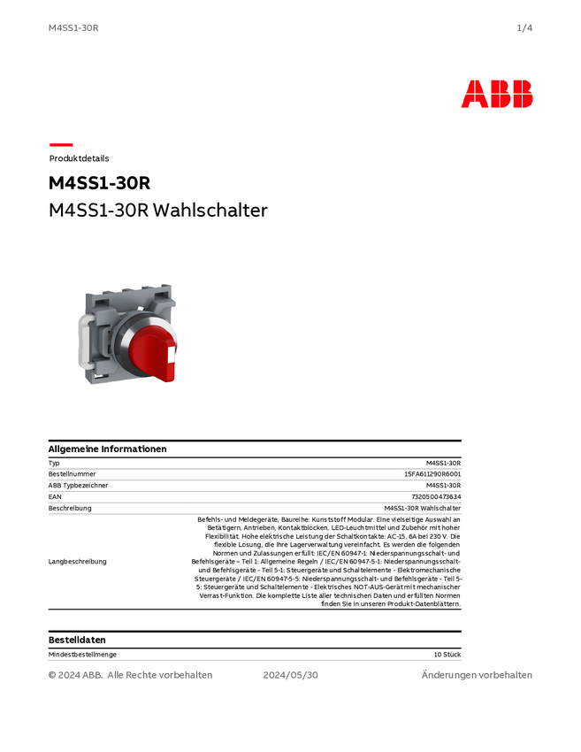 1SFA611290R6001 ABB 1SFA611290R6001 M4SS1-30R Przełącznik wyboru 1 szt.