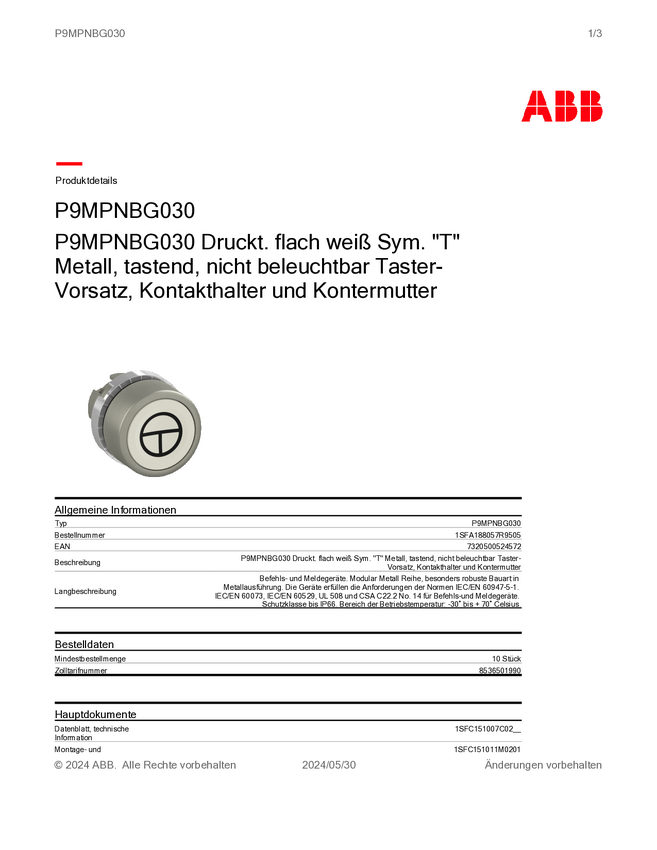 1SFA188057R9505 ABB 1SFA188057R9505 P9MPNBG030 Przycisk biały 1 szt.