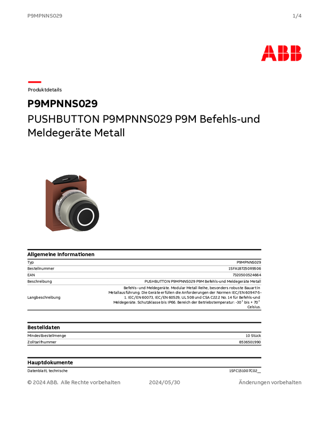 1SFA187250R9506 ABB 1SFA187250R9506 P9MPNNS029 Przycisk czarny 1 szt.
