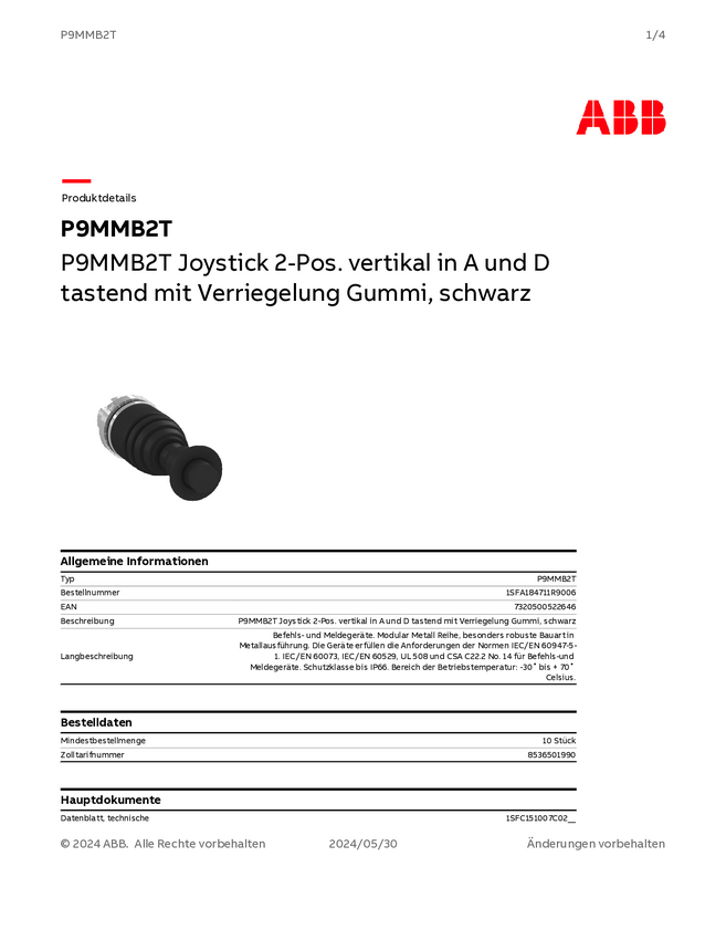 1SFA184711R9006 ABB 1SFA184711R9006 P9MMB2T Przełącznik typu joystick 1 szt.