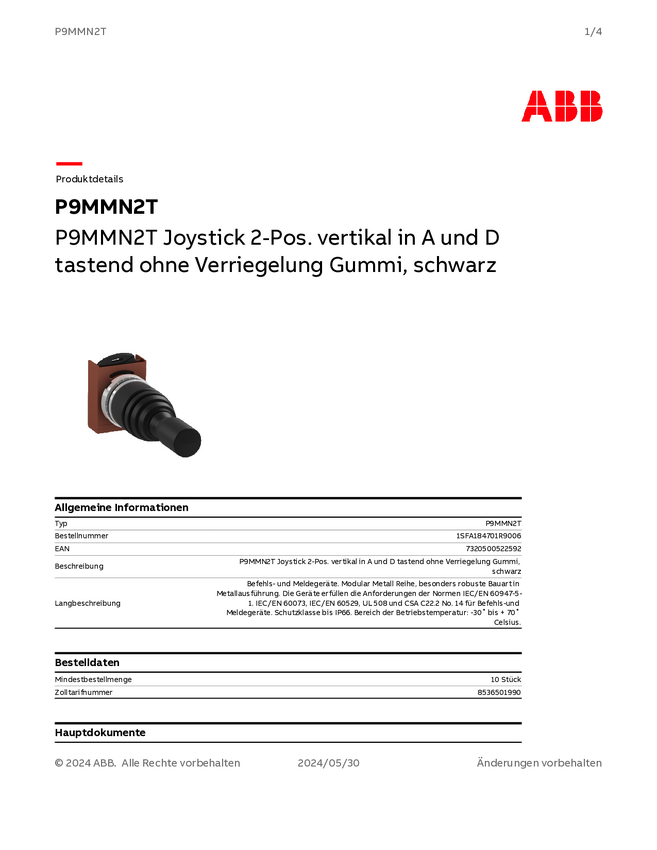 1SFA184701R9006 ABB 1SFA184701R9006 P9MMN2T Przełącznik typu joystick 1 szt.
