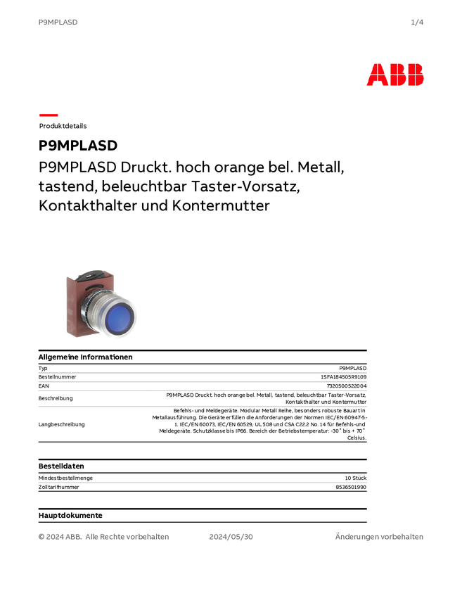 1SFA184505R9109 ABB 1SFA184505R9109 P9MPLASD Przycisk biały 1 szt.