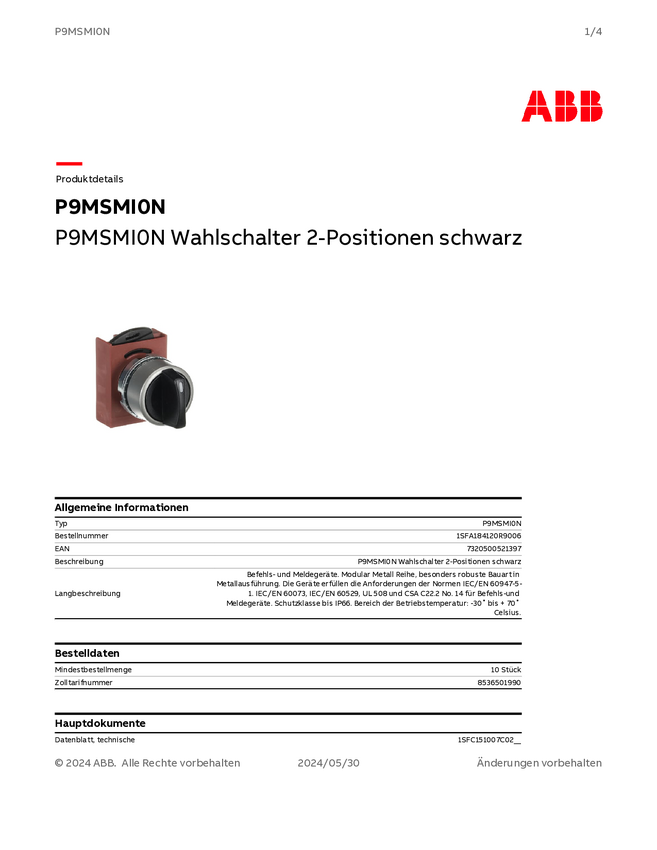 1SFA184120R9006 ABB 1SFA184120R9006 P9MSMI0N Przełącznik wyboru przełącznik obrotowy 1 szt.