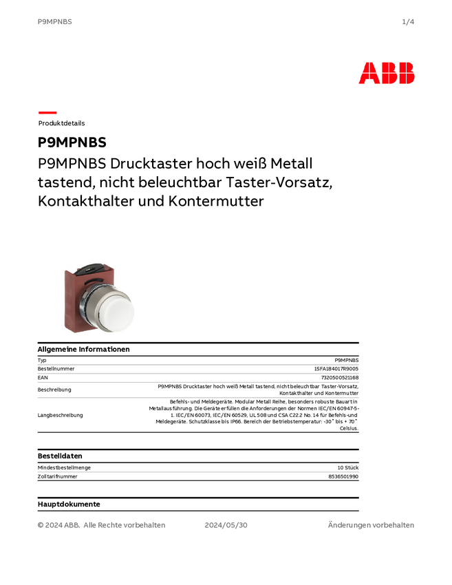1SFA184017R9005 ABB 1SFA184017R9005 P9MPNBS Przycisk biały 1 szt.