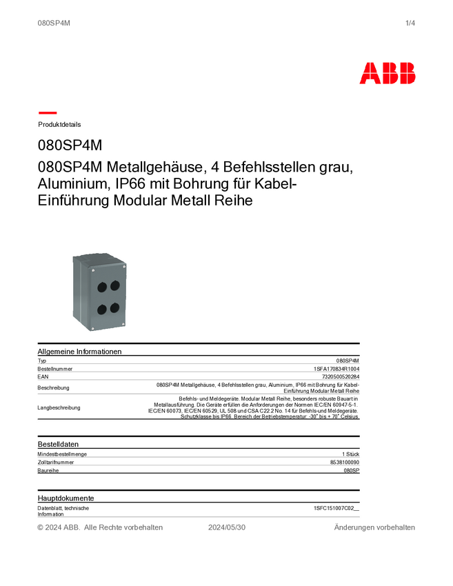 1SFA170834R1004 Metalowa obudowa ABB 080SP4M (S x W) 87 mm x 145 mm 1 szt.