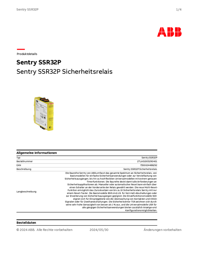 2TLA010052R0401 Przekaźnik bezpieczeństwa ABB 2TLA010052R0401 1 szt.