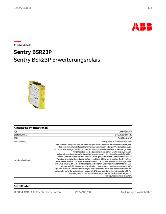 2TLA010041R0601 Przekaźnik bezpieczeństwa ABB 2TLA010041R0601 1 szt.